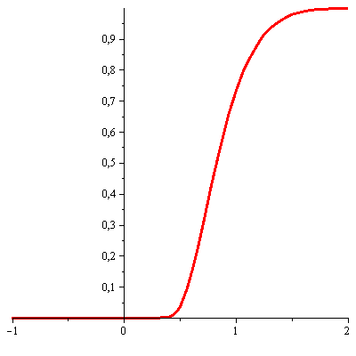 >F := unapply(1/2+(1/2)*erf((1/8*(t-.9))*sqrt(2.1)), t);