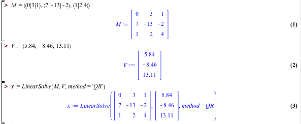 Any solutions on how to use the "LinearSolve" command to solve an equation system?