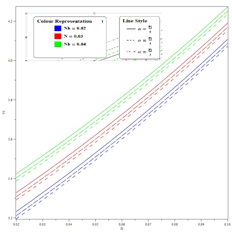plot([seq(seq(T3(alpha, Nb, delta2), Nb in [0.1, 0.2,0.3]), alpha in [Pi/6, Pi/4, Pi/3])], delta2 = 0.02.. 0.1,  titlefont = ["ROMAN", 15], labels = ["δ1", "T3"], labeldirections = ["horizontal", "vertical"], labelfont = ["SYMBOL", 11], linestyle = [solid, solid,solid,longdash, longdash,longdash, spacedash,spacedash, spacedash], symbol = [BOX, CROSS, CIRCLE, BOX, CROSS, CIRCLE, BOX, CROSS, CIRCLE], color = [blue,red, green, blue,red, green,blue,red, green], axes = boxed,size = [1000, 1000]);