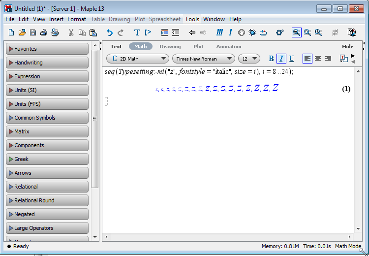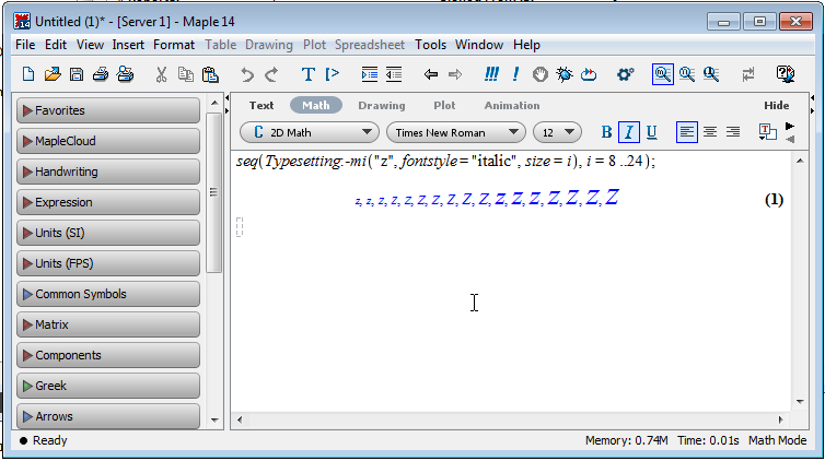 Here's the same example running in Maple 14 on the same system:
