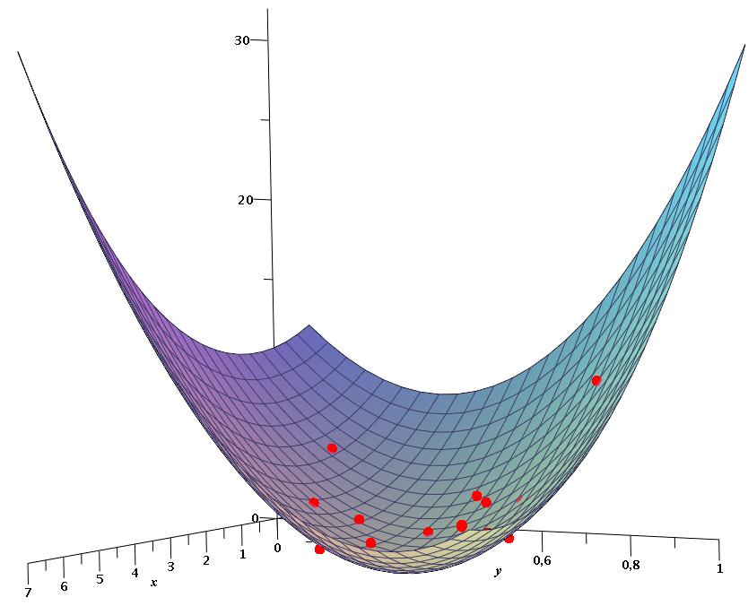 2) Moreover, it seems to be astonishing that (according to my polynomial), the z value of the minium is 30.60. As regard to the paraboloïd, it sould be not far from 0 and not give a big value...