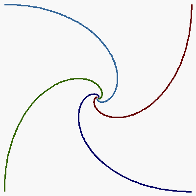 Here's a solution for an arbitrary number of dancers, using evenly spaced points on the unit circle as the starting points. The ODEs are essentially the same as in my solution above. I decided to form the dependent variable names with indexing (x[1]x[2]y[1], etc.) rather than with cat and ||. I also changed the indexing from 0..n-1 to 1..n. The brevity of the code shows Maple's great power at forming and working with a repetitive set of ODEs.