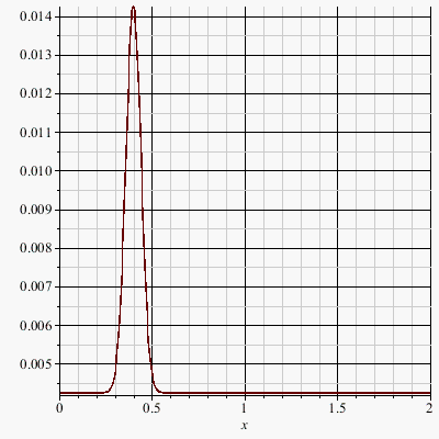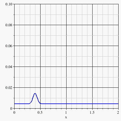 F:= 0.01*exp(-(x-0.4)^2/(1/300)) + hin;