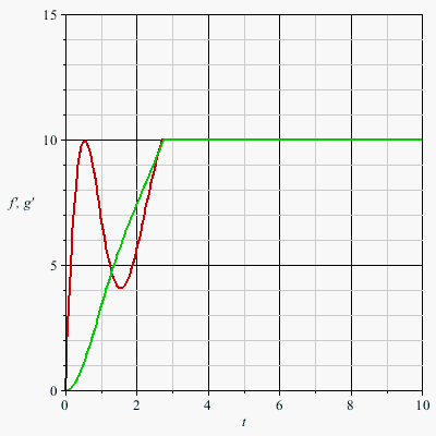 diff(g(t),t$2) = piecewise(diff(g(t),t) < 10, m/50, 0)