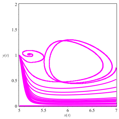 Simply include the argument scene= [x(t),y(t)] in your DEplot command and you'll get this: