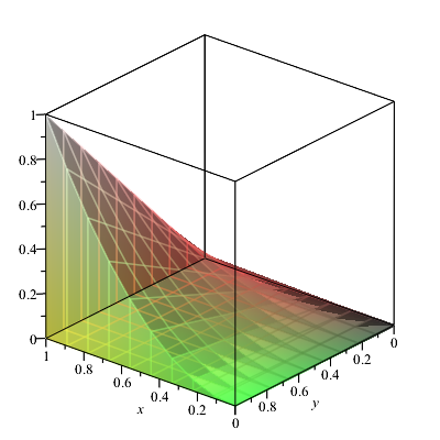 Fplot:= x^2*y, x= 0..1, y= 0..1, grid= [10$2], filled:
