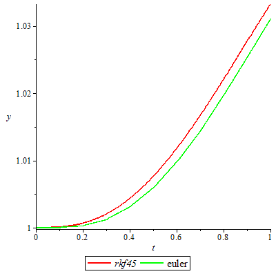 P1:= plots:-odeplot(Sol1, [t,y(t)], t= 0..1, color= red, legend= rkf45):