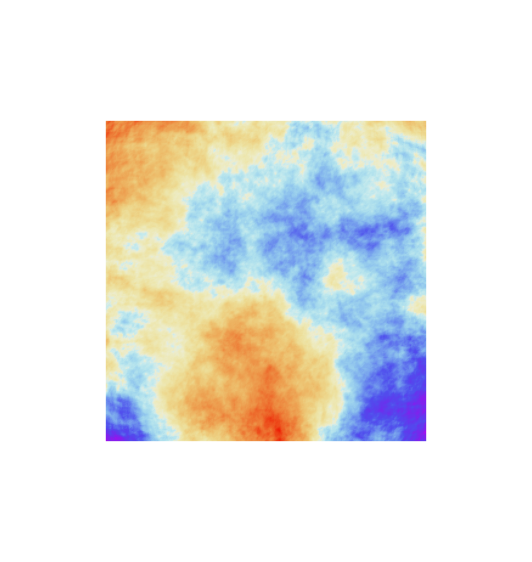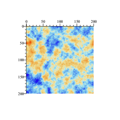 @Markiyan Hirnyk Thank you very much for the encouragement. That's a beautiful painting. The clouds are similar to the Gaussian Random Fields with large convolution radii. I find them also beautiful. Here's an example of a GRF(512, 128) (the 128 is the convolution radius). (Sorry for the excessive whitespace---these are 3D plots projected onto one of the coordinate planes; I don't know how to eliminate it.) It looks like this could be a model for how the shapes of continents, islands, and oceans develop.