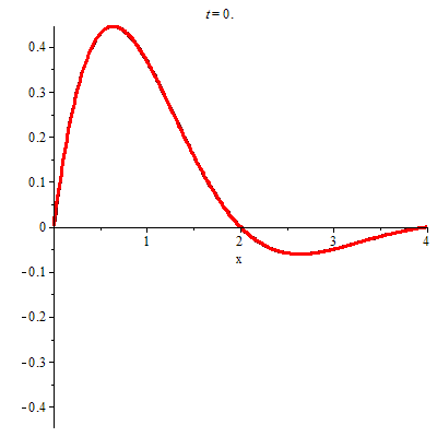 IBCs:= u(x,0)=sin(Pi/2*x)*exp(-x), D[2](u)(x,0)=0, u(0,t)=0, u(4,t)=0: