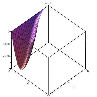 @Carl Love To analyze where f(a,c,n) < 0, the 3d animation should be viewed in conjunction with an animation of the level curves f(a,c,n) = 0. This can be done with implicitplot.