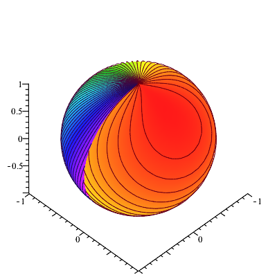 b:= contourplot(f, psi = 0..2*Pi, theta= 0..Pi, contours= 60, thickness= 0);