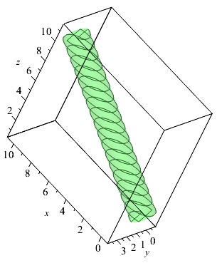 plots[display](seq(C([0, 0, 1], [10, 3, 10], 1, 40, op(opts)), opts =
