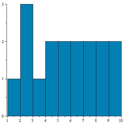 Histogram(a,frequencyscale=absolute,binwidth=1)