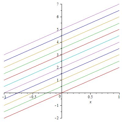 plot( [ seq( 2*x+i/2, i=0..10 ) ], x=-1..1 );