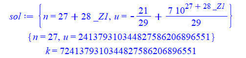 sol:=isolve(10*u+7=(7*10^n+u)/3); # General solution for _Z1::nonenegint