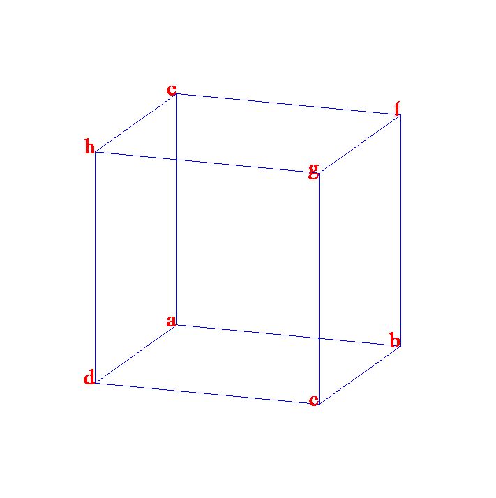 Your problem is easily solved by exhaustive search. Denoted by  a, b, c, d, e, f, g, h  vertices of the cube: