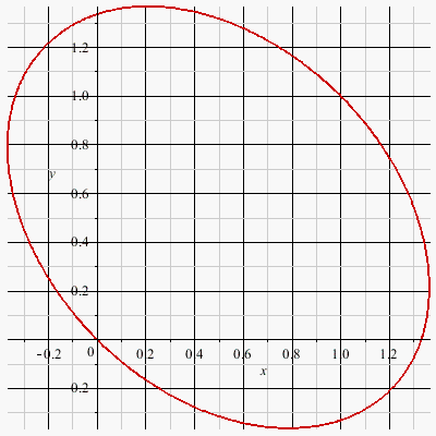 ((x-1)^2+y^2)^(1/2)+(x^2+(y-1)^2)^(1/2) = 2