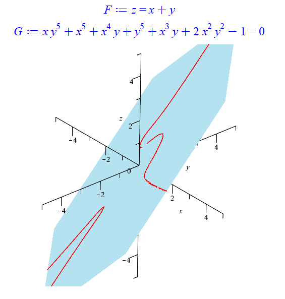 A:=plots:-intersectplot(F, G, x=-5..5, y=-5..5, z=-5..5, thickness=3, numpoints=64000):