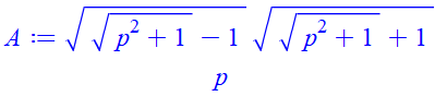 A:=sqrt(sqrt(p^2+1)-1)*sqrt(sqrt(p^2+1)+1);