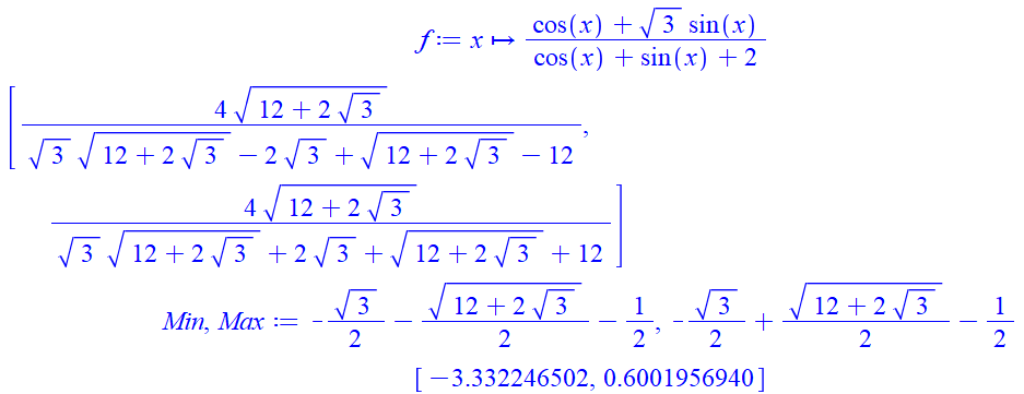 f:=x->(cos(x)+sqrt(3)*sin(x))/(cos(x)+sin(x)+2);