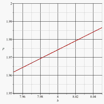 plots:-implicitplot(sqrt(b)*sqrt(1-4*p/b)-2*arctan(sqrt((9*p/b-22201/10000)/(9/4-9*p/b))) = 0, b = 7.95..8.05,