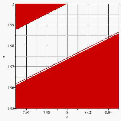 p = 1.95..2, color=red, gridrefine=3, view=[7.95..8.05,1.95..2] );