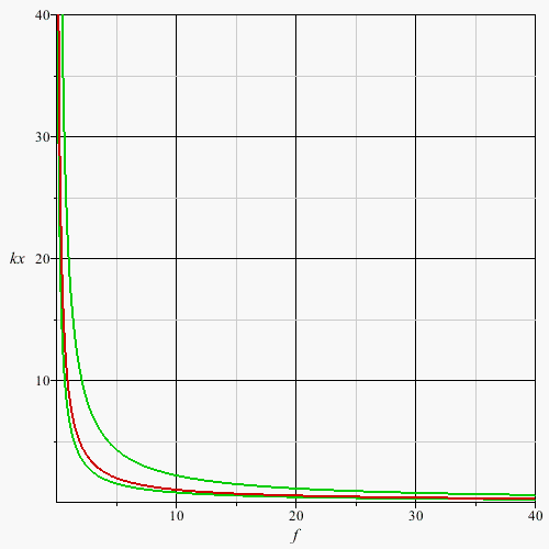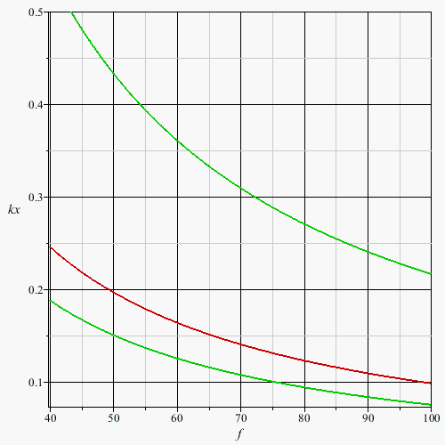 plots:-implicitplot([kx*f = sqrt(469.31696), kx*f = sqrt(56.79129), Eq], f = 40 .. 100, kx = 0 .. .5, color = [`$`(green, 2), red], gridrefine = 5, size = [500, 500])