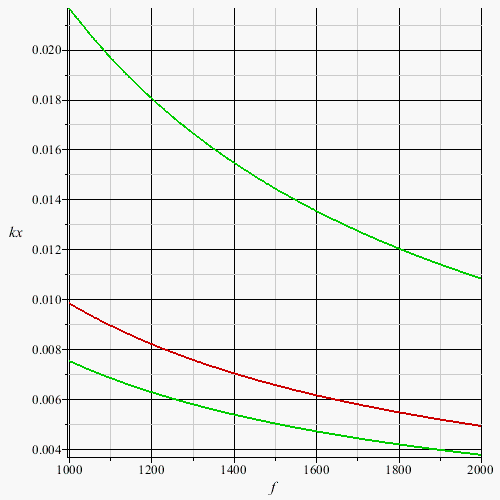 plots:-implicitplot([kx*f = sqrt(469.31696), kx*f = sqrt(56.79129), Eq], f = 1000 .. 2000, kx = 0 .. .1, color = [`$`(green, 2), red], gridrefine = 5, size = [500, 500])