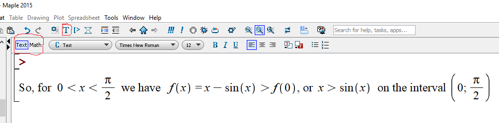 First, click on the capital letter  T , and then use Text  and  Math  buttons and the corresponding palettes if necessary.