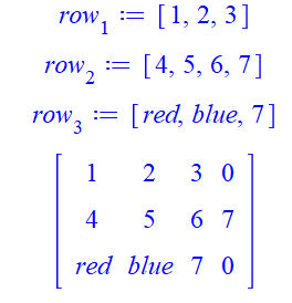 Note that Maple automatically aligns the lengths of the rows by adding zeros.