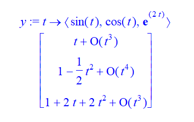 y:=t-><sin(t), cos(t), exp(2*t)>;