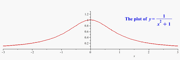 plots:-display(plot(1/(x^2+1), x=-3..3, 0..1.3, color=red),plots[textplot]([2, 1, typeset("The plot of  ", y=1/(x^2+1)), font = [TIMES, BOLD, 16]], color=blue), scaling=constrained, size=[900,300]);