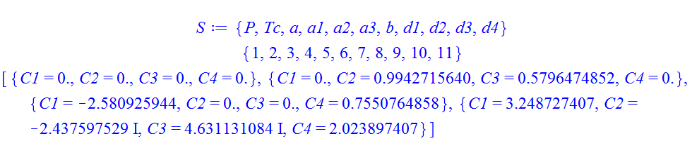 S;  # Values of the parameters