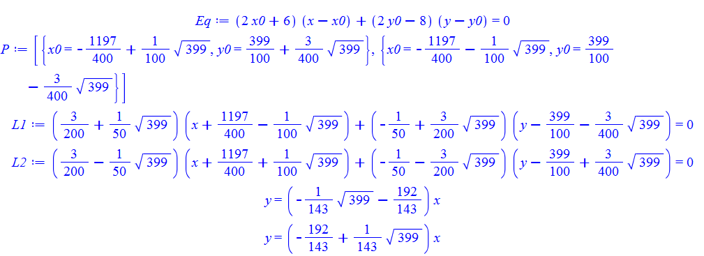 y=collect(expand(rationalize(solve(L1, y))), x);  # The final results - the tangent lines in explicit form