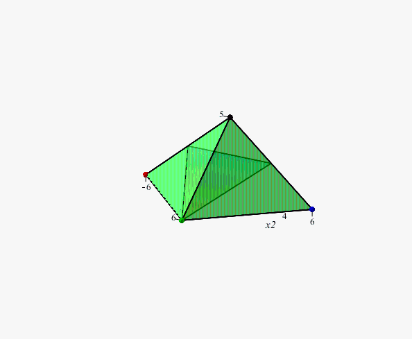 plots:-display(Punkte, Pyramide, Dreieck, view = [0 .. 6, -6 .. 6, 0 .. 5]);