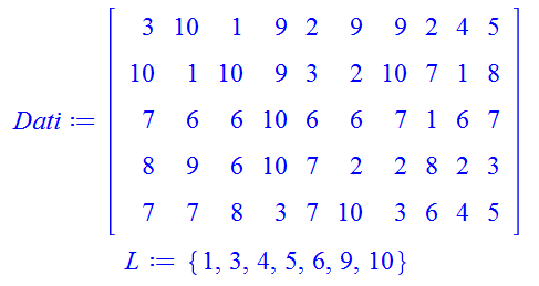 Dati:=LinearAlgebra:-RandomMatrix(5, 10, generator=1..10);