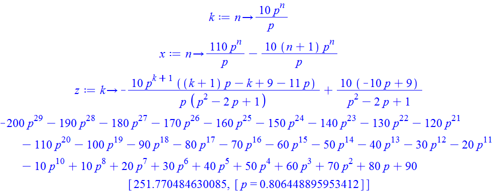 Optimization:-Maximize(%, p=0..2);