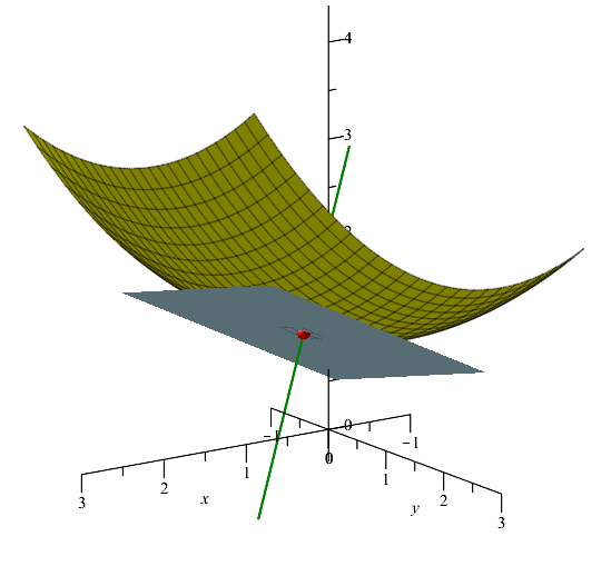 Plane:=plot3d(D[1](f)(P[])*(x-P[1])+D[2](f)(P[])*(y-P[2])+f(P[]), x=-0.3..2.3, y=-0.3..2.3, style=surface, color="LightBlue"):