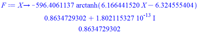 F:=unapply(int(1/(0.1060444429e-1-0.2120888857e-1*X+0.1033933318e-1*X^2), X), X);