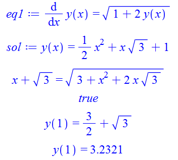 eval(eq1, sol);  # Substitution of the solution into the equation eq1