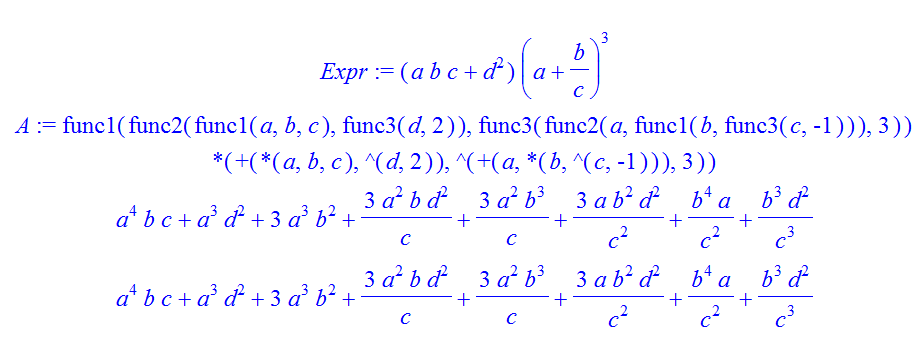 Expr:=(a*b*c+d^2)*(a+b*c^(-1))^3;