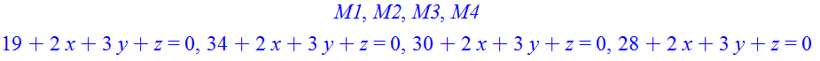 seq(Equation(plane(Q||i, [M||i, n], [x,y,z])), i=1..nops(L));