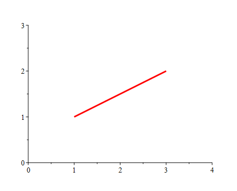 plot([op(t*~A+(1-t)*~B), t=0..1], color=red, thickness=3, view=[0..4, 0..3], scaling=constrained);