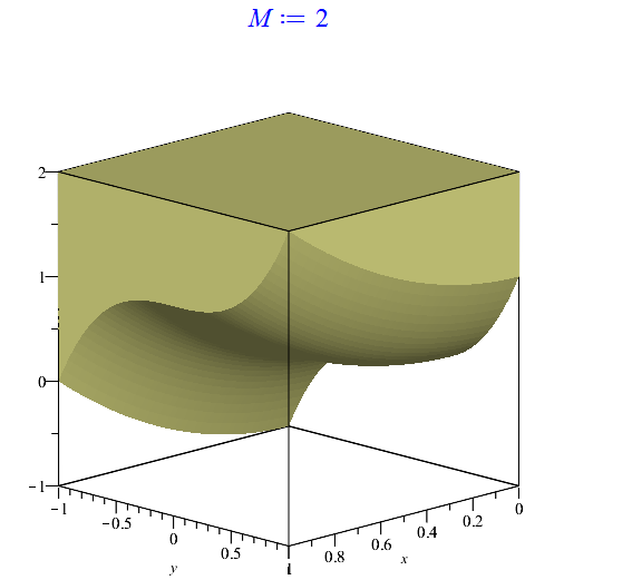 A:=plot3d(f-M, x = 0 .. 1, y = -1 .. 1, style=surface, color=khaki, filled):