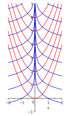 B:=plot([seq(-1/2*ln(abs(x))+C, C=0..10)], x=-2..2, color=blue):