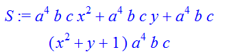 S:=a^4*b*c*x^2+a^4*b*c*y+a^4*b*c;