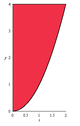 plots[implicitplot]((y-4)*(y-x^2) <= 0, x = 0 .. 2, y = 0 .. 4, filledregions = true, scaling = constrained, gridrefine = 5);