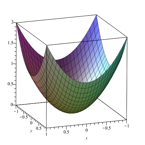 plot3d(x^2+y^2, x = -1 .. 1, y = -1 .. 1, linestyle=solid);