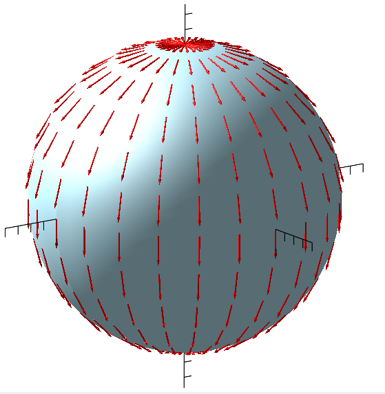 V := seq(seq(plots[arrow]([cos(phi)*sin(theta), sin(phi)*sin(theta), cos(theta)], [(1/5)*cos(phi)*cos(theta), (1/5)*sin(phi)*cos(theta), -(1/5)*sin(theta)], color = red), phi = 0 .. evalf(2*Pi), evalf(Pi/12)), theta = 0 .. evalf(Pi), evalf(Pi/12)):