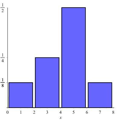 Hist([1, 3, 5, 7], [1/8, 1/4, 1/2, 1/8], 1.8);
